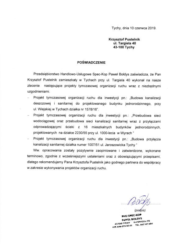 Na podstawie art. 32 ust 4 Rozporządzenia Parlamentu Europejskiego i Rady (UE) 2016/679 z dnia 27 kwietnia 2016 r. w sprawie ochrony osób fizycznych w związku z przetwarzaniem danych osobowych i w sprawie swobodnego przepływu takich danych, zwane dalej RODO Państwa dane przetwarzane są tylko do celów kontaktowych i nie będą udostępniane innym podmiotom niż upoważnionym na podstawie przepisów prawa. Dane będą przetwarzane tylko i wyłącznie do momentu zrealizowania celu, dla którego zostały zebrane. Administratorem podanych przez Panią/Pana danych osobowych za pomocą formularza kontaktowego jest Firma "KP ZNAKI Usługi Inżynierskie Krzysztof Pustelnik " z siedzibą w 43-100 Tychy, ul.Targiela40. Wybierając drogę kontaktu z nami za pomocą formularza kontaktowego, jednocześnie wyraża Pani/Pan zgodę na przetwarzanie swoich danych osobowych takich jak: imię, nazwisko, nazwa firmy, adres mailowy i telefon. Ma Pan/Pani prawo dostępu do swoich danych osobowych, ich sprostowania, usunięcia lub ograniczenia przetwarzania, a także wniesienia sprzeciwu wobec przetwarzania. Jeśli ktoś naruszy bezpieczeństwo Pana/Pani danych osobowych, przysługuje Panu/Pani prawo złożenia skargi do Prezesa Urzędu Ochrony Danych Osobowych.